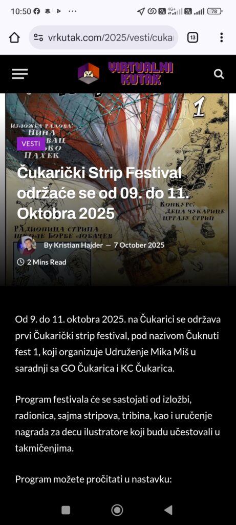 1 thought on “ČUKNUTI FEST – ČUKARIČKI STRIP FESTIVAL 09-11.10.2025”